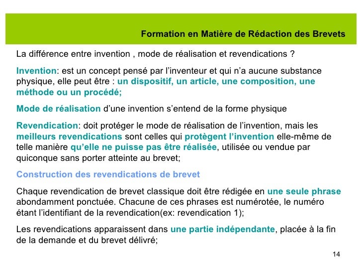 Une demande de brevet, c’est donc une course de vitesse et un marathon, un jeu d’échec et de stratégie pour obtenir en Europe, aux Etats-Unis, en Asie et ailleurs, les revendications les. Information technique divulguée par les brevets 4. Ainsi, selon les brevetées, il était possible de généraliser, en partant d’un exemple, un intervalle de valeur pour l’insérer dans la revendication du brevet tel que délivré. Activité « brevet » dans le.