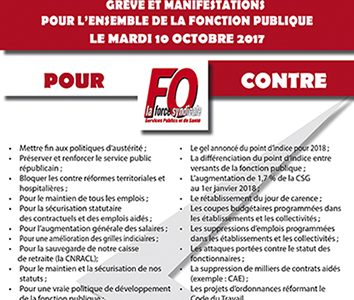 FO est la Confédération générale du travail FORCE OUVRIERE. Fonction publique : la grève du janvier élargit ses contours Avec 1à 1manifestations prévues dans les départements et des appels à la grève dans de nombreux secteurs, les agents des trois versants de la fonction publique confirment leur mobilisation contre l’austérité à la veille de la journée d’actions du janvier à l’initiative de FO, la CGT et Solidaires.